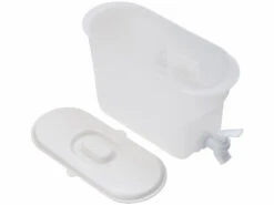 Le système breveté d’écoulement sur simple pression d’un bouton permet de servir facilement et sans coulure.