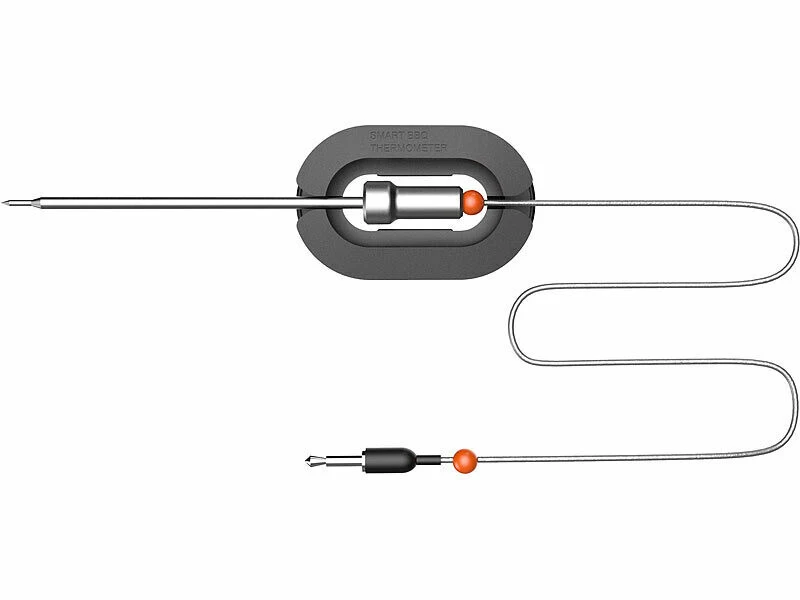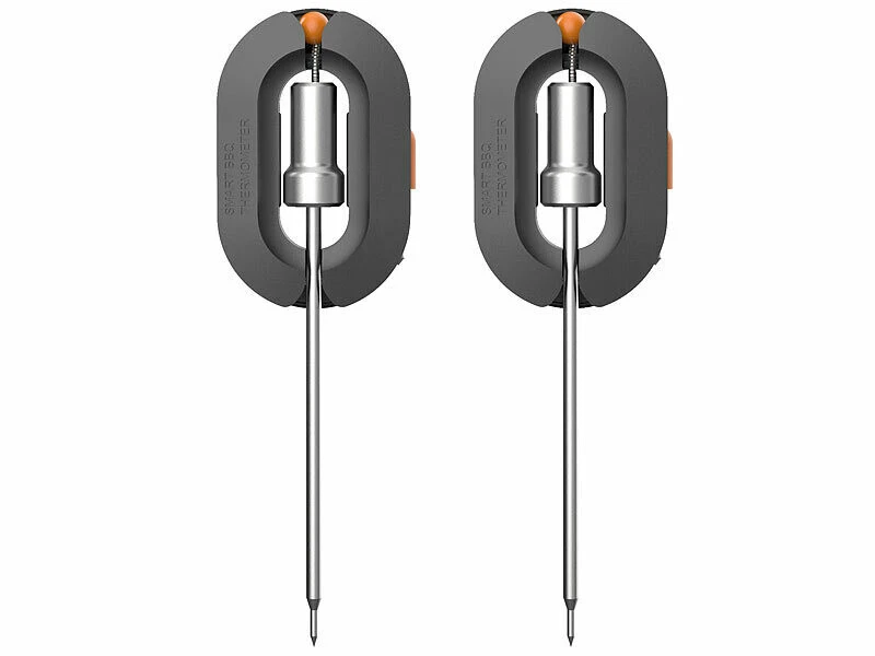 Une fois raccordés, ces deux capteurs se plantent simplement dans les aliments dont la température de cuisson doit être surveillée. Ils mesurent la chaleur de la nourriture pour ensuite transmettre les données au thermomètre à barbecue, puis à l’application. Vous gardez ainsi œil sur vos grillades tout le long de leur cuisson, même lorsque vous n’êtes pas à côté.