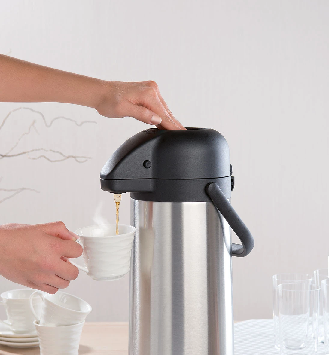 Préparez des boissons pour votre famille ou vos amis. Cette carafe isotherme peut contenir près de trois litres de liquide. C’est idéal pour un barbecue ou une pause-café. Avec le système de pompe, il suffit d’appuyer sur le dessus de la carafe pour se servir. En 2 pressions, votre tasse est pleine. Et la carafe peut ainsi servir jusqu’à une vingtaine de tasses.