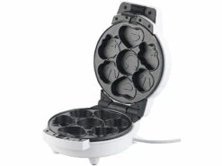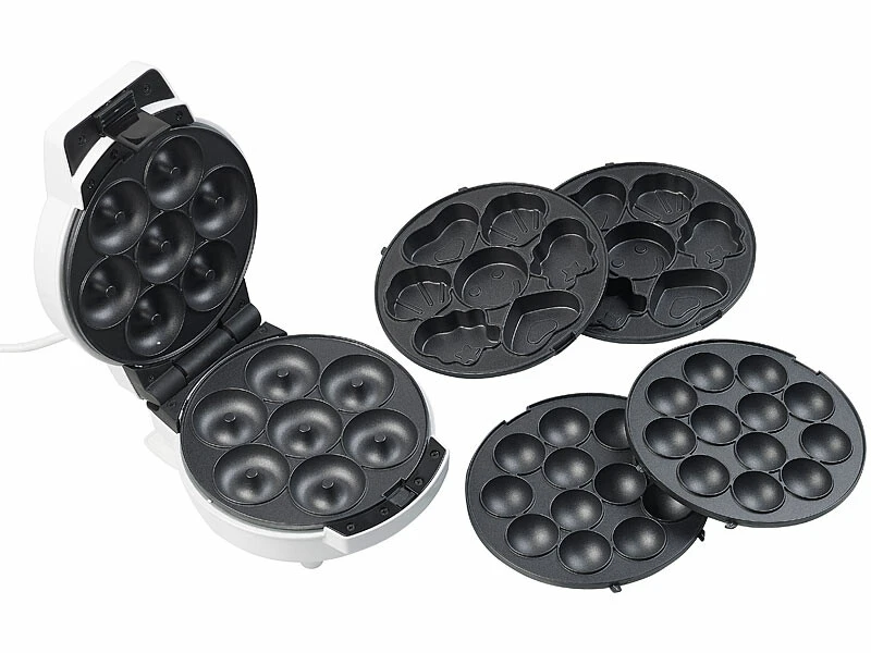 Préparez des pâtisseries aussi variées que délicieuses ! Grâce à ses plaques interchangeables, l’appareil permet d’obtenir des mini-donuts, des cakes pops ou 7 cupcakes aux formes rigolotes. Dégustez-les tels quels et encore chauds, ou amusez-vous à les décorer avec glaçage, chocolat fondu ou pâte d’amande. Vous réaliserez ainsi des douceurs aussi agréables aux yeux qu’au palais. C’est idéal pour tous les gourmands, petits et grands !