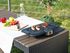 Grillez vos aliments rapidement et facilement : remplissez le réservoir avec de l’eau, branchez l’appareil à une prise d’alimentation, et la fête peut commencer ! Nul besoin de manipuler du charbon, d’allumer un feu ni de surveiller la température. Ce barbecue est propre et sans odeur : électrique, il ne produit pas de fumée. La graisse s’écoule simplement dans l’eau du réservoir, ce qui l’empêche de brûler. Cela vous permet de griller des aliments en toute tranquillité sur votre balcon, sur votre terrasse ou même dans votre véranda.