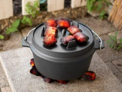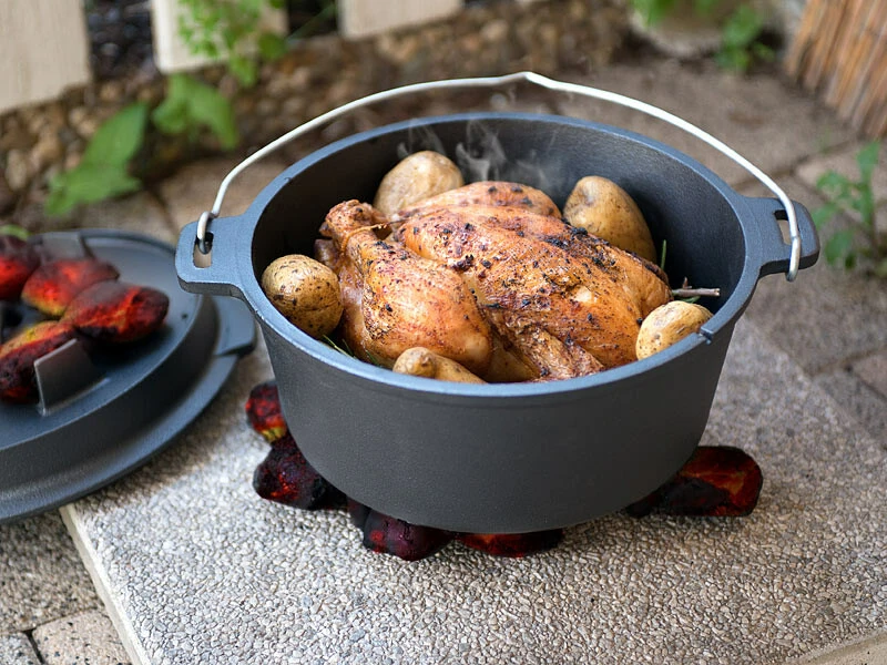 Placez-la simplement sur le feu de cheminée, le feu de camp ou dans le four et laissez-la faire le reste. Grâce à sa fonte de haute qualité, la cocotte absorbe et conserve très bien la chaleur. En plus de cuire uniformément vos préparations, cet ustensile garde également vos plats au chaud une fois le feu ou le four éteint.