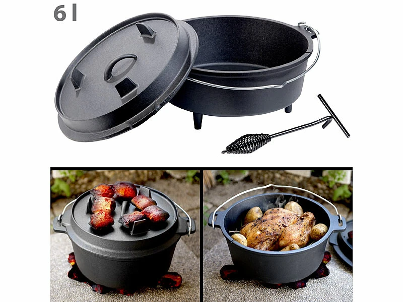 - Four hollandais en fonte 6 L avec pieds de support et couvercle/poĂȘle, par Rosenstein & Söhne