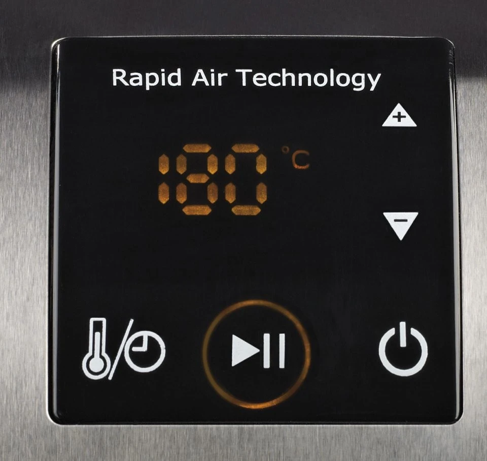 Grâce à l’écran tactile, réglez facilement et en un clin d’œil la température et le temps souhaités, jusqu’à 200 °C et 60 minutes.