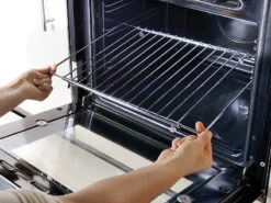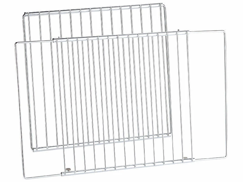 Ajustez la largeur de cette grille de four en un instant Ă l’aide des vis-oreilles fournies : il vous suffit de rĂ©gler la largeur souhaitĂ©e et la maintenir en serrant les vis. Vous pouvez alors l’utiliser comme grille supplĂ©mentaire pour votre four, et profiter ainsi de plus de surface de cuisson.