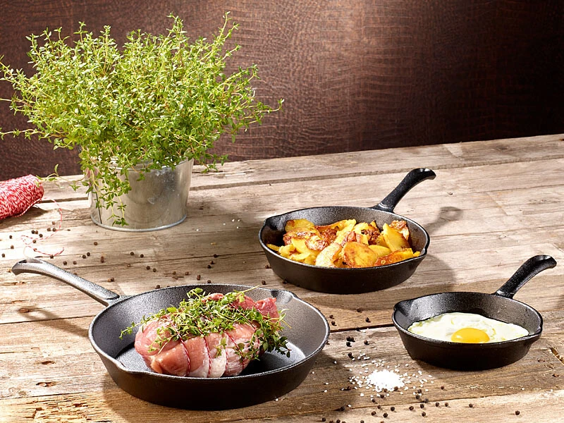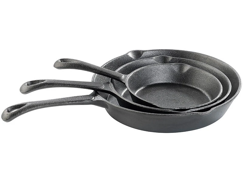 Une poêle qui convient à chaque plat : Les trois poêles en fonte sont désormais disponibles en lot économique à un prix particulièrement avantageux !