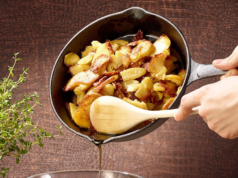 Réussissez les pommes de terre sautées, les saucisses & Co. à chaque fois ! Les cuisiniers le savent : Rien ne répartit la chaleur plus uniformément que la fonte. Sublimez vos plats grâce à cette méthode de cuisson douce et économe en énergie. Grâce à la cuisson douce, les aliments conservent tout leur goût et leurs arômes.