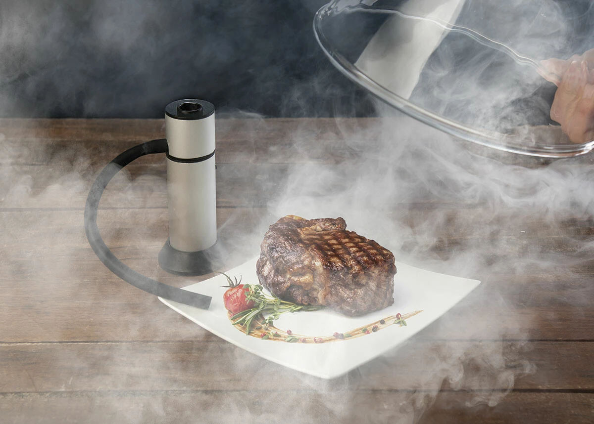 Il existe de nombreuses possibilitĂ©s d’utilisation. Utilisez le mini fumoir directement Ă table grâce Ă une cloche Ă fumer. C’est une manière de diffuser les arĂ´mes particulièrement rapidement. Ou bien utilisez tout simplement le filtre intĂ©grĂ© pour y placer du thĂ© ou des Ă©pices, et dĂ©couvrez de nouvelles saveurs !