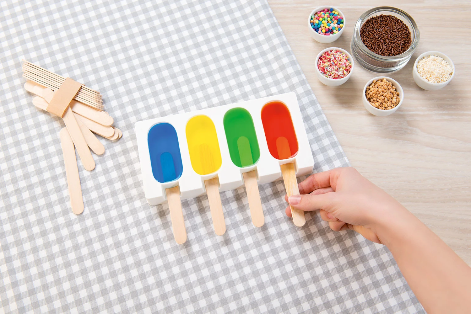 - Utilisation simple : insérer le bâtonnet, verser jusqu’à 70 ml de préparation et placer au congélateur