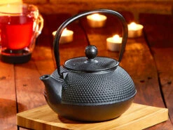 - Théière en fonte avec revêtement intérieur en émail et passe-thé intégré pour infusion du thé directement dans la théière (caractéristiques complètes)