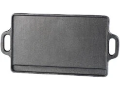 Pourvue de deux côtés différents, la plaque est parfaitement polyvalente : le côté avec des rainures est parfait pour frire viande et légumes, le côté plat accueille vos œufs au plat, crêpes et pizzas.
