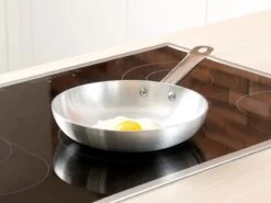 L’acier carbone qui compose cette poêle a plusieurs avantages : il chauffe de manière homogène, peut être utilisé sur tous feux (gaz, induction, four…) et se nettoiera facilement à la main.