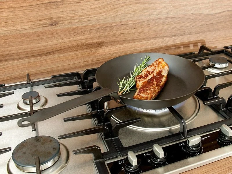 Chauffez vos aliments de façon efficace et homogène. Robuste et résistante aux rayures, la poêle en acier carbone convient pour tous les types de cuisinières, même pour les plaques à induction.