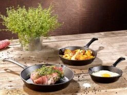 Pour la saveur propre aux mets cuits dans des ustensiles en fonte, cette poêle vous permettra de réussir les pommes de terre sautées, les saucisses grillées, etc.