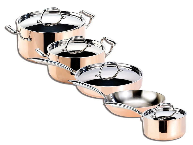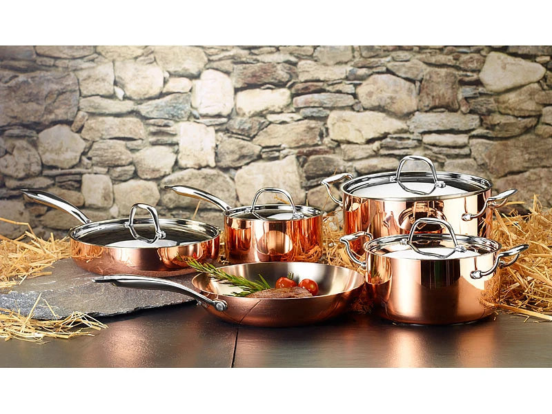 Aucun autre matériau ne diffuse la chaleur aussi vite que le cuivre. Cuisinez vos plats dans des poêles et casseroles en cuivre et obtenez les meilleurs temps de réaction ; la température moyenne de vos préparations reste constante, le goût a ainsi plus de temps pour se déployer. Le fond multi-couches avec cœur en aluminium assure une chauffe optimale sur tous types de plaques : induction, gaz, vitrocéramique, halogène, etc. De plus, l’intérieur de ces accessoires de cuisine en cuivre est un alliage acier-chrome-nickel, ce qui rend les poêles, les casseroles et les faitouts particulièrement faciles à laver.