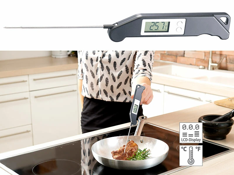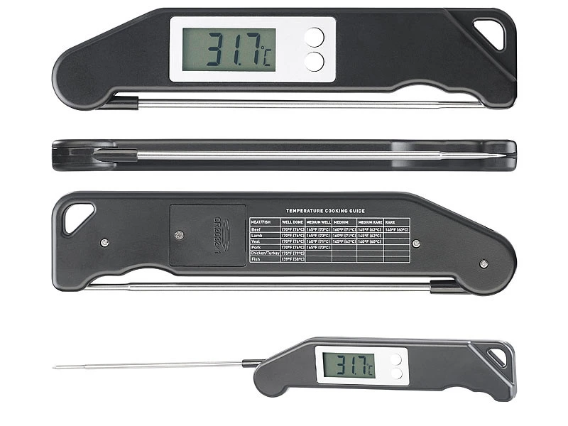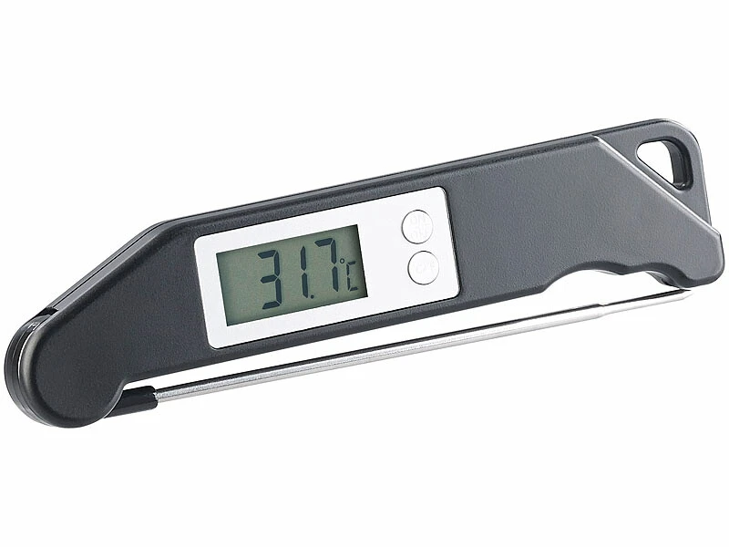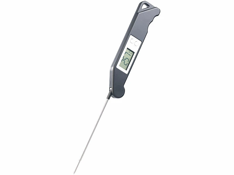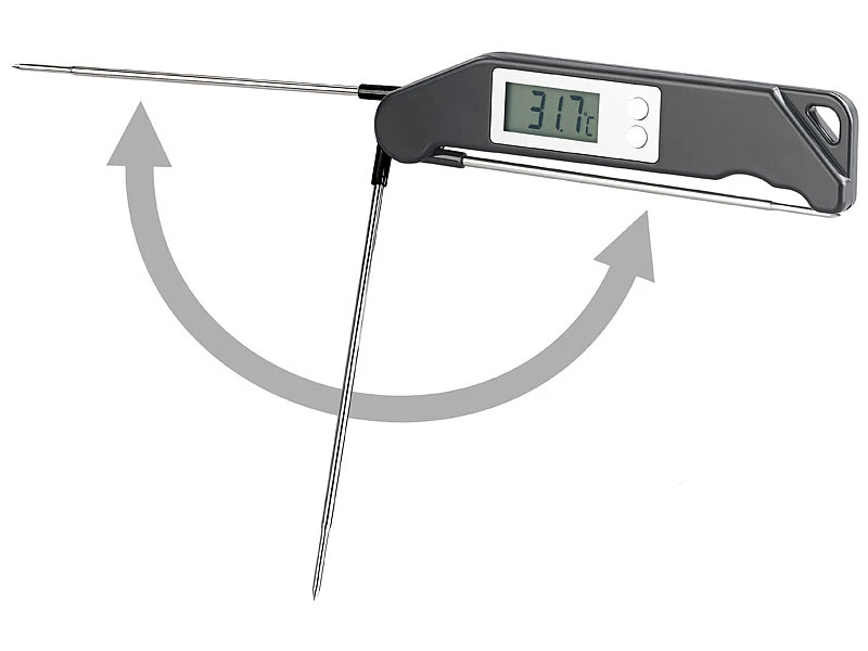 Mesurez avec prĂ©cision la tempĂ©rature de vos aliments et boissons, pour des rĂ©sultats culinaires Ă©patants. Le capteur long de 13 cm vous permet de tester la tempĂ©rature de votre rĂ´ti sans risquer de brĂ»ler vos doigts, et l’Ă©cran LCD vous affiche les valeurs de façon claire. Repliez-le après utilisation pour un rangement compact.