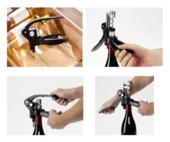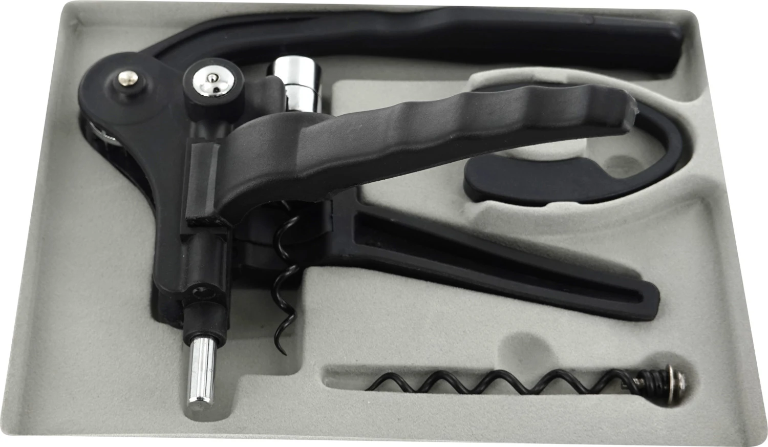 - Coffret avec 1 tire-bouchon à levier, 1 coupe-capsule et 1 spirale supplémentaire